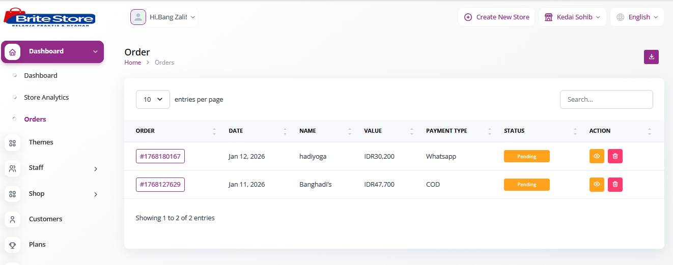 Dengan dashboard terpusat, sistem manajemen produk dan pesanan, serta analitik real-time, platform ini memungkinkan UMKM bertransaksi lebih rapi, meningkatkan konversi, dan mendorong pertumbuhan bisnis yang berkelanjutan.